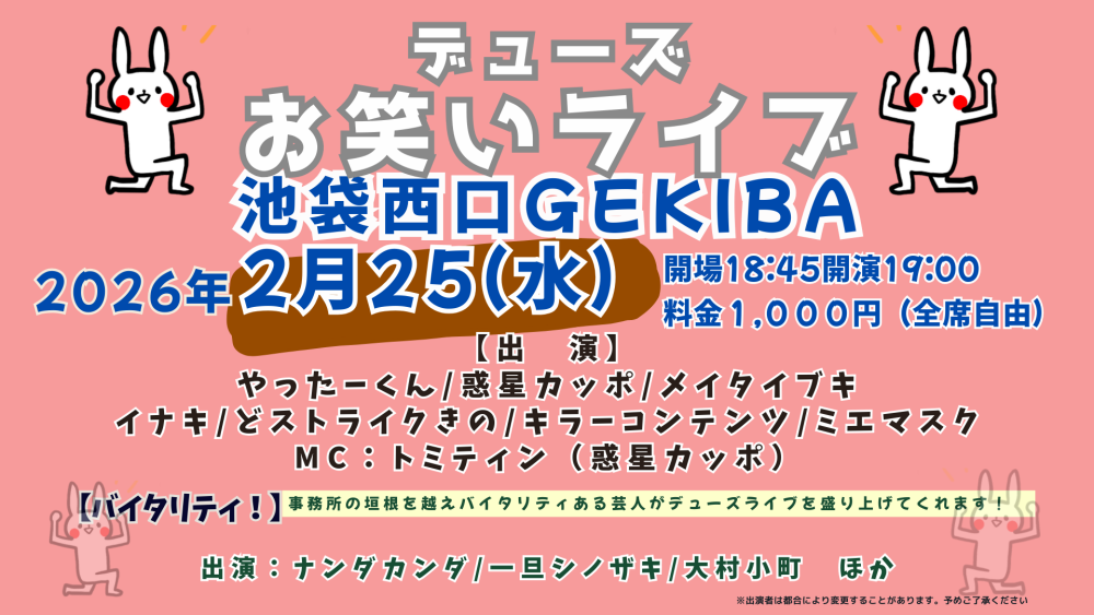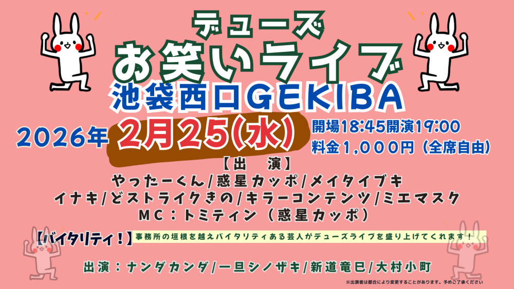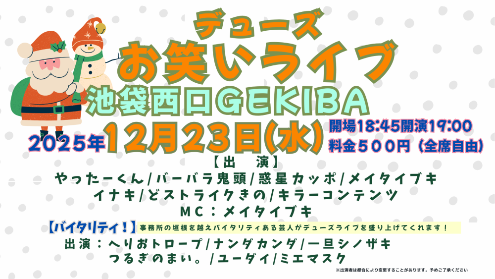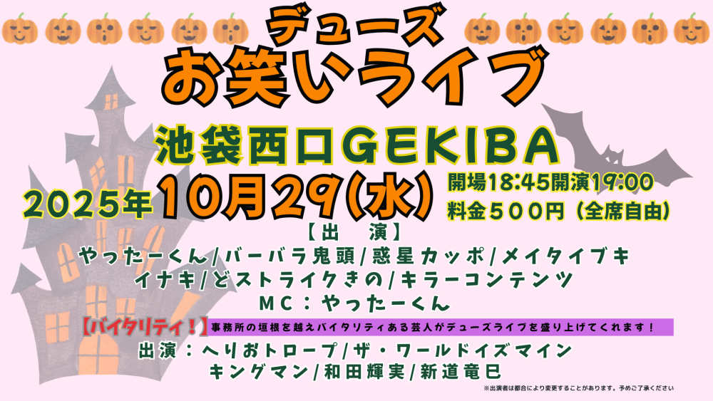 デューズお笑いライブ開催!!(予約サイトはこちら)