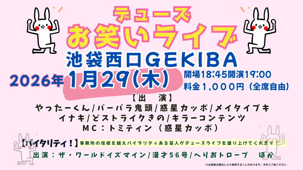 所属芸人による事務所ライブ!池袋西口GEKIBAにて毎月開催🎵